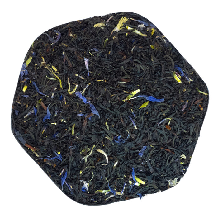Ingrédients : thé noir*, arôme naturel de bergamote (arôme de bergamote), pétales de bleuet*